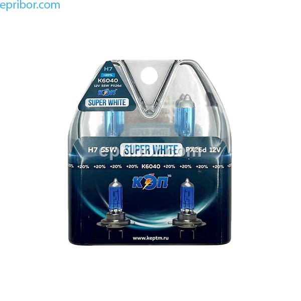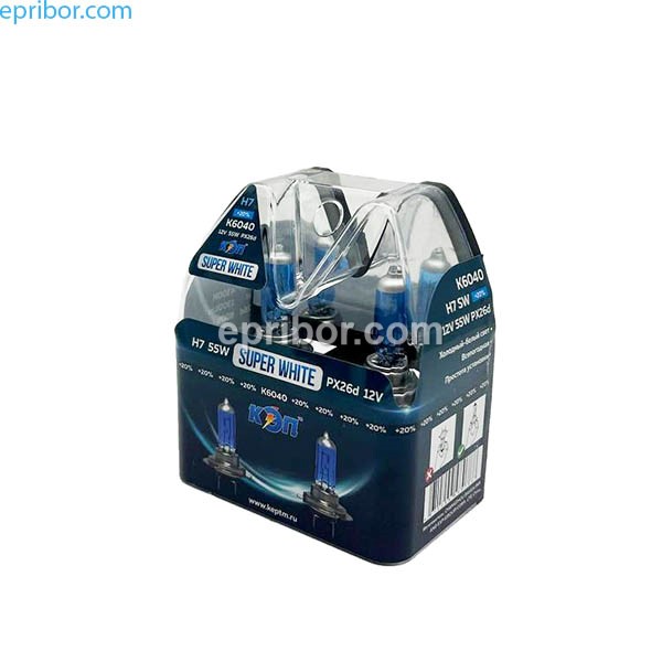Комплект автоламп 12V H7 55W SW - Super White автомобильная кварцевогалогенная лампа холдного белого света, применяемая при любых погодных условиях, обеспечивая безопасность и комфорт движения.