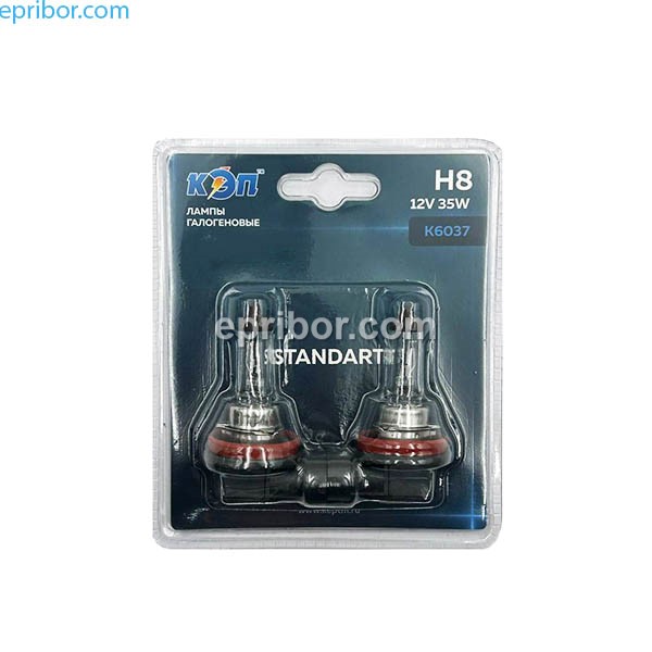 Комплект автоламп H8 - 2 шт в блистере, стандартные автомобильные кварцевогалогенные лампы, применяемые при сложных погодных условиях (снег, дождь, туман), обеспечивая безопасность и комфорт движения. Соответсвует всем нормам и стандартам, в том числе и по потребляемой мощности.