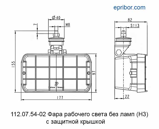 Фара рабочего света с защитной крышкой 112.07.54-02, без ламп (используется Н3 12V 55W (12-55-1))