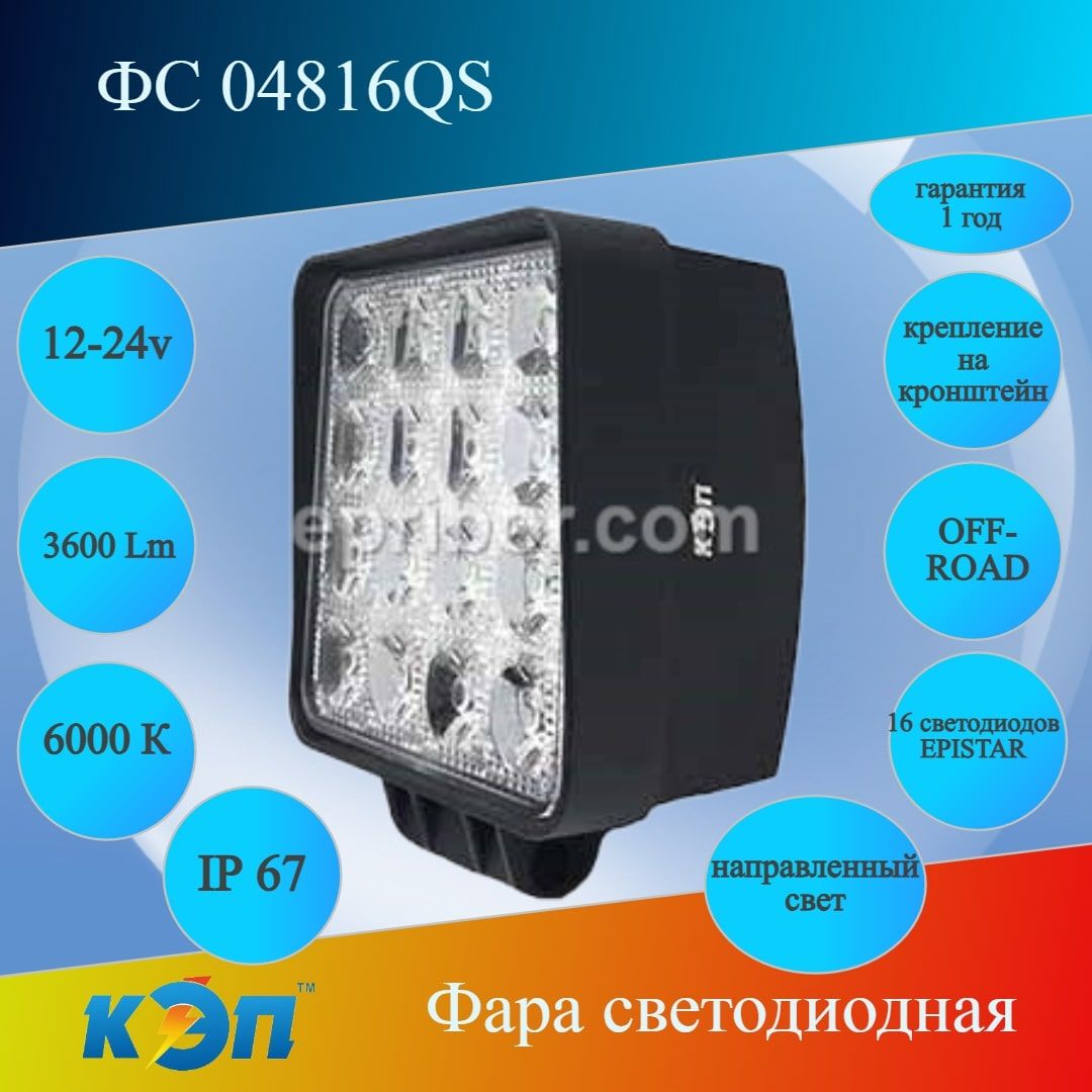 Фара светодиодная ФС 04816QS квадратная, направленного (дальнего) света,
