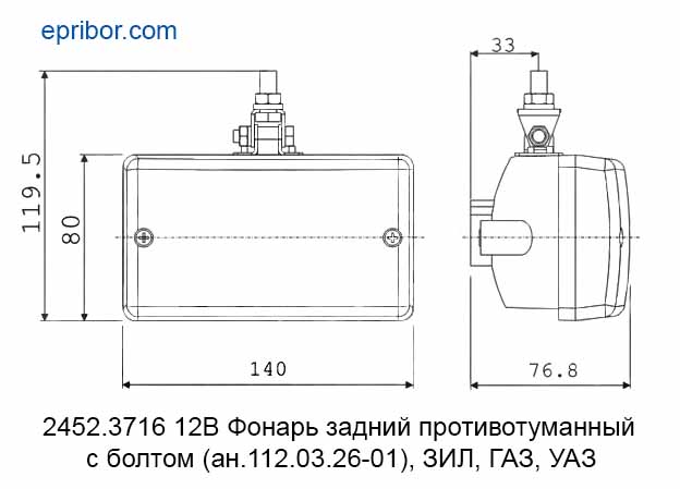 Задний противотуманный фонарь устанавливается сзади транспортного средства. Расположение фонаря на автотранспортном средстве горизонтальное.