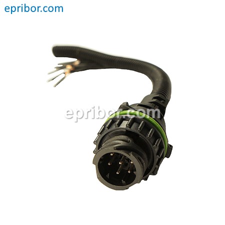 Герметичный 7-ми контактный прямой, байонетный AMP разъём с 7-ю проводами в гофре.