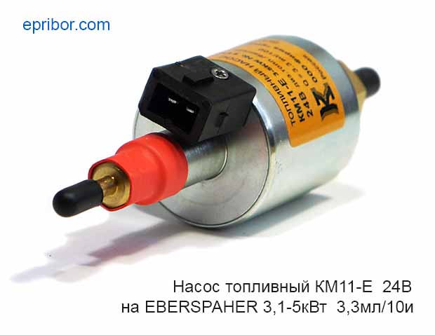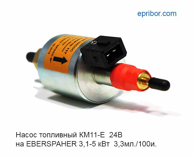 КМ11Е - аналог насосов на отопители и подогреватели "EBERSPAHER" (3,1-5 кВт) производства Германия. Имеет аналогичный электроразъём и производительность. Расход топлива 3,3 мл. на 100 импульсов (3,3/100).