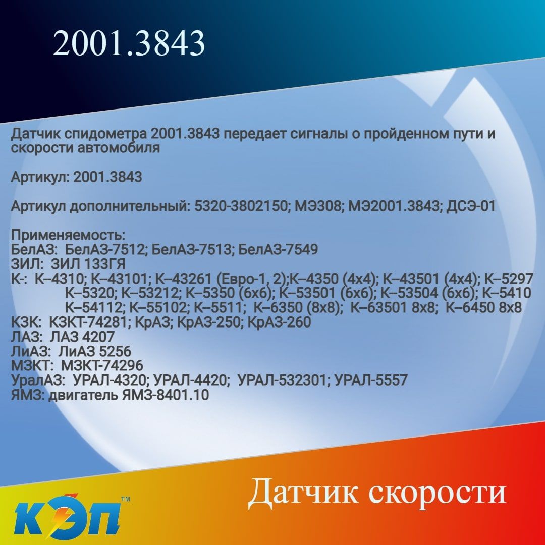 Датчик спидометра 2001.3843 передает сигналы о пройденном пути и скорости автомобиля