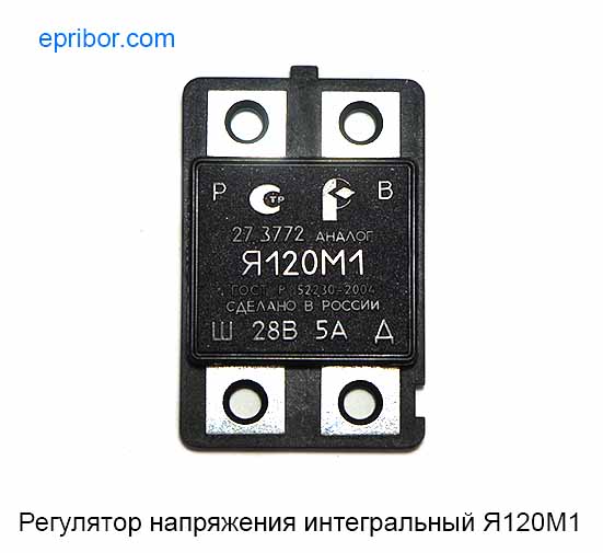Регулятор напряженгия Я120М1 предназначен для автоматического поддержания постоянного номинального напряжения на выводах генератора при изменениях его частоты вращения и тока нагрузки.