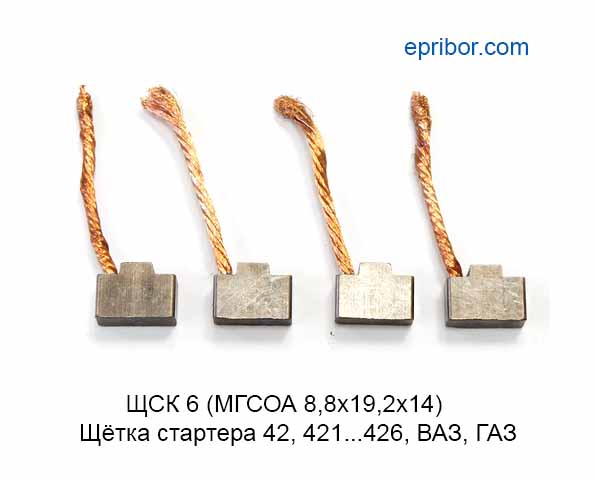 Щётка меднографитовая ЩСК 6 (МГСОА 8,8х19,2х14) для стартеров: 42.3708, 42.3708-10, 421.3708, 422.3708, 425.3708, 426.3708