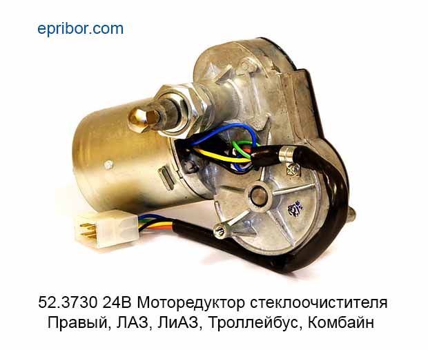 Моторедуктор 52.3730 предназначен для работы в системе стеклоочистителя автомобиля ЛАЗ-42021,4204, ЛИАЗ-5256, Троллейбусы, Комбайны.