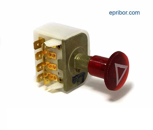 Выключатель 24.3710 предназначен для коммутации электрических цепей указателей поворотов и аварийной сигнализации.