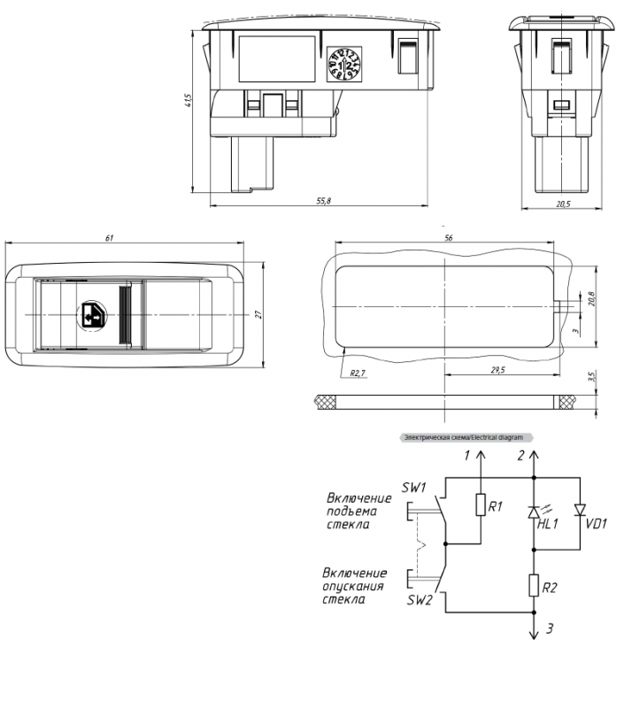 Переключатели стеклоподъемников предназначены для управления моторедуктором стеклоподъемника.