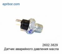 Датчик аварийного давления масла 2602.3829 предназначен для включения (выключения) сигнальных ламп при падении (подъеме) давления масла в системе смазки двигателя транспортного средства.