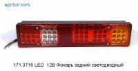 Фонарь задний светодиодный 171.3716 LED 12В со жгутом без разъёма, выполняет функции указателя поворота, стоп-сигнала, заднего габаритного огня, освещения заднего номерного знака, заднего хода.Имеет светоотражающего устройства (катафот), предназначенного для сигнализации наличия транспортного средства.